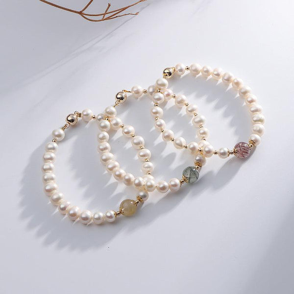 Celebrate natural beauty with this exquisite baroque freshwater pearl and colorful rutilated quartz bracelet. Featuring 6-7mm freshwater pearls and 8mm vibrant quartz beads, this bracelet is designed to captivate. Meticulously crafted using advanced polishing, electroplating, and setting techniques, it ensures a luxurious and durable finish.